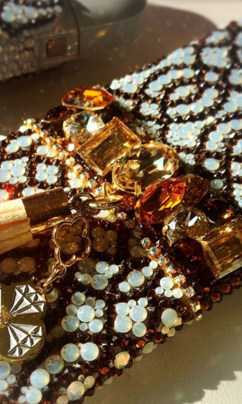 アリアドネの秘宝(Ariadne’s Treasure)モロッカン柄 セピア色ビジュースマホカバー 全機種対応