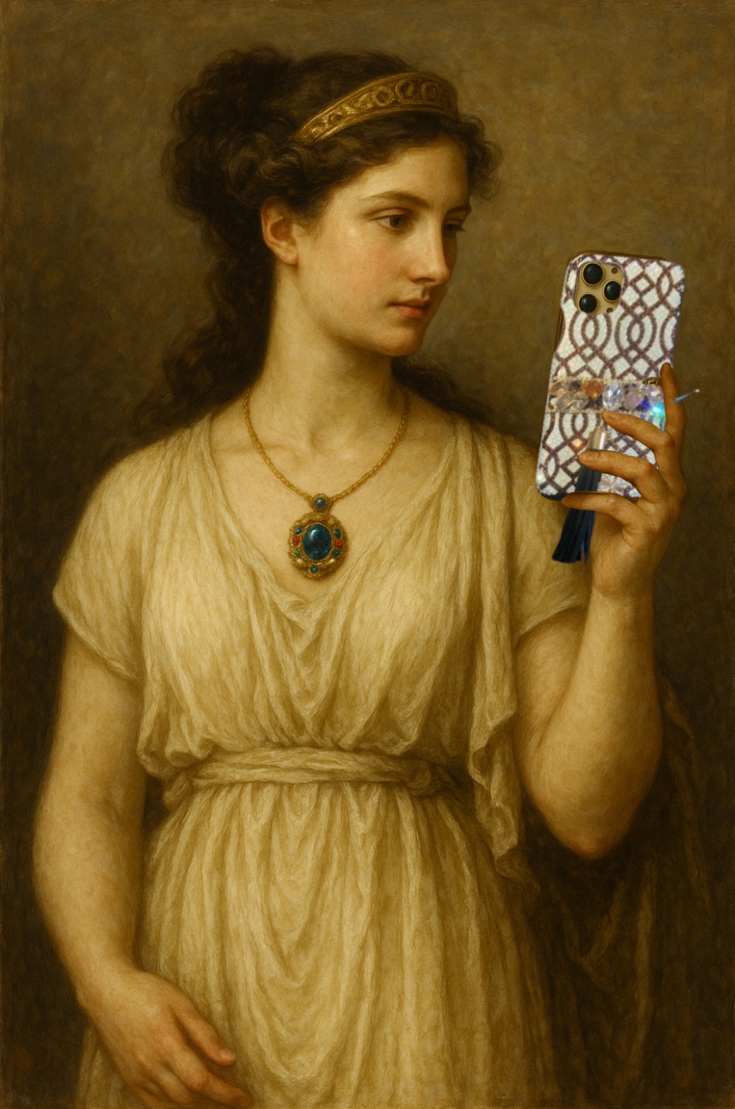 このスマホケースは、そんな彼女の秘宝――時を超えて美と知恵を守り続ける“護り石”――を現代に蘇らせた逸品です。