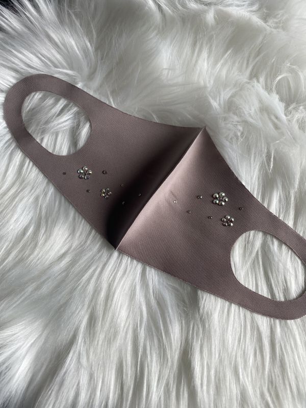 洗って繰り返し使えるウレタンマスクに、正規スワロフスキー®・クリスタルでお花のモチーフをデコレーション。